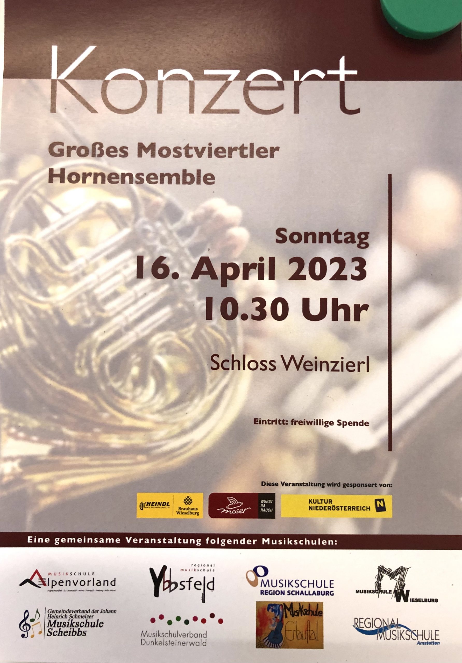Es musizieren alle regionale Hornmusikschüler*innen gemeinsam im Schloß Weinzierl.