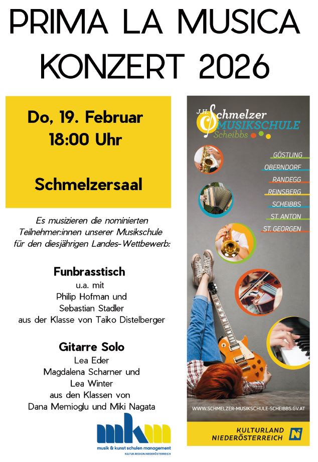 Unsere diesjährigen Teilnehmer:innen für den NÖ Landes-Wettbewerb Prima la musica gestalten einen abwechslungsreichen Konzert Abend.